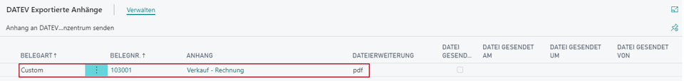 Wird nun eine Buchung exportiert, die einen Beleganhang in der gewählten Tabelle hat, dann wird dieser in die Tabelle DATEV Exportierte Anhänge übertragen und kann dann von dort an das Datencenter gesendet werden.