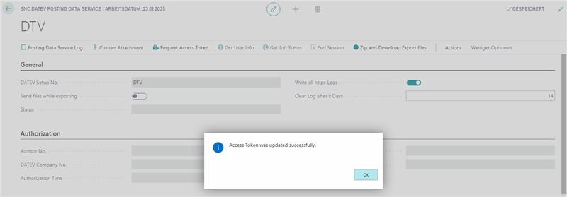 - Then select Request Access Token in the menu of the SIEVERS DATEV Buchungsdatenservice setup.