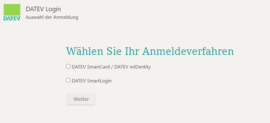 - When it comes to selecting the login procedure, now choose DATEV SmartLogin.