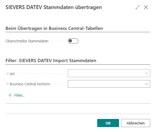 Bei dem Stammdatenimport erhalten Sie auch mit der Einstellung "Übertrage in Business Central-Tabellen" eine weitere Abfrage, wie mit den importierten Stammdaten verfahren werden soll. Es erfolgt keine automatische Übertragung in den Ursprung.
