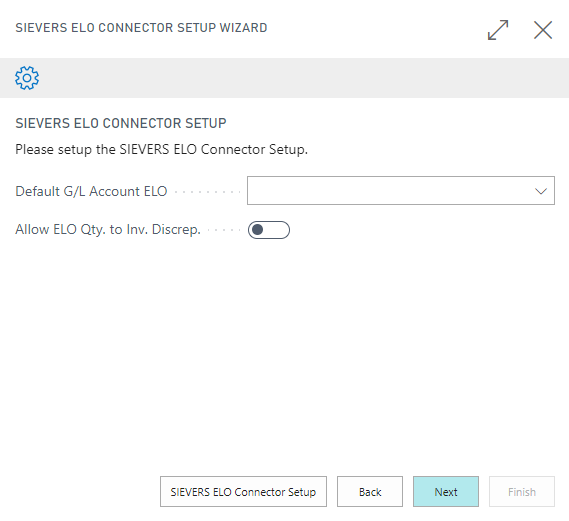 In the first step of the setup, you can store a default G/L account for ELO and specify whether you want to allow ELO invoices with inventory discrepancies.
