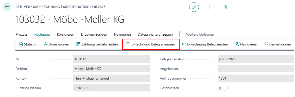 In der gebuchten Rechnung (oder Gutschrift) kann der Beleg für Ihre E-Rechnung angezeigt werden.