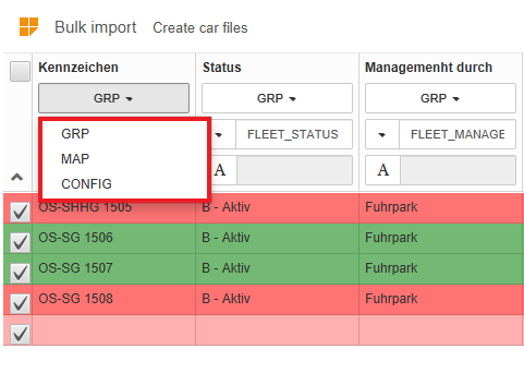 Für den Importvorgang, ist eine Zuordnung der Spalten zu den Felder notwendig. Ganz oben wird die Bezeichnung der Spalte aus Excel angezeigt. Diese Spalte kann konfiguriert und somit zu einem Gruppen - oder Map-Feld zugeordnet werden.