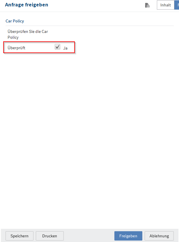 Soll die Fahrzeugkonfiguration angenommen werden, braucht es vorher einen Haken bei Überprüfung der Car-Policy.