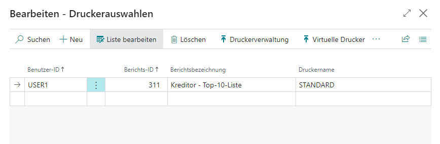 Die Lösung kennt jetzt Ihre Drucker und deren Papierfächer. Nun muss sie noch wissen, welche Daten an die Drucker übergeben werden sollen. Aus diesem Grund besteht der nächste Schritt Druckerauswahlen darin, die soeben erstellten virtuellen Drucker den auszudruckenden Berichten und einem Nutzer zuweisen.