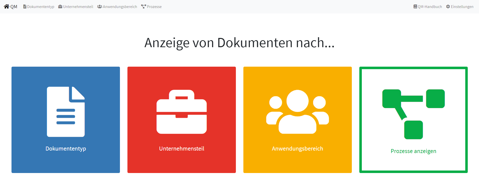 In der Weboberfläche des Archivservers (auch Webview genannt) können Sie unkompliziert QM Dokumente einsehen und herunterladen. Auf der Startseite ist auswählbar, welche Art von Dokumenten Sie angezeigt bekommen möchten.