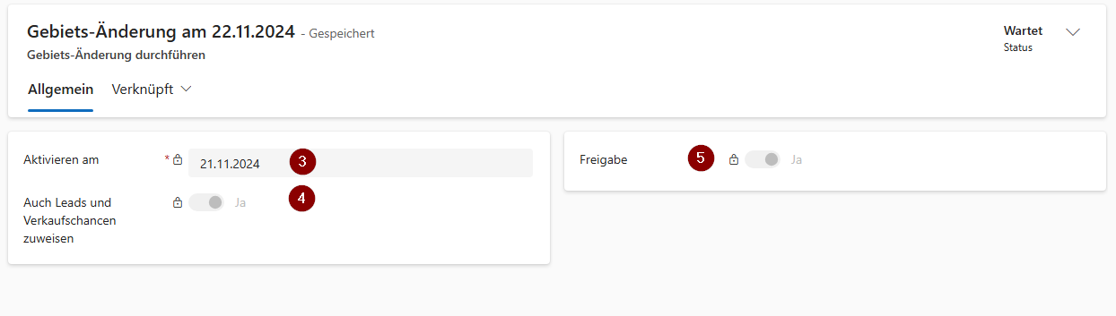 - Erstellen Sie eine neue Gebiets-Änderung. Legen Sie das Datum fest, an der die Änderungen durchgeführt werden sollen.