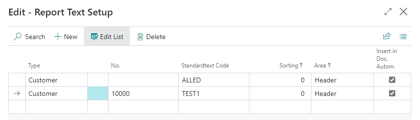- No.: Here you select for which customer, vendor or group the document text should be.