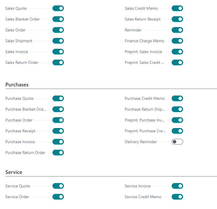 This step is about assigning the reports to be used. For example, you can set that you want to use the sales order confirmations of the Report Pack, but for purchase invoices the Business Central standard is used.