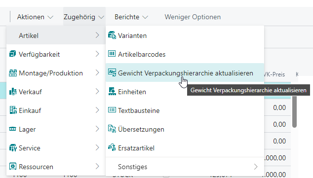 - Synchronisiere Gewicht in Verpackungshierarchie: Aktivierung dieser Option führt dazu, dass bei Änderung des Brutto- oder Nettogewichts einer Zeile in der Verpackungshierarchie die anderen Einträge automatisch angepasst werden können. Vor der Änderung gibt es noch eine Abfrage. Es gilt beispielsweise die Formel 'Stückzahl Lagerbestandsanlage ÷ Stückzahl Kleinste Lagereinheit * Bruttogewicht Kleinste Lagereinheit = Neues Bruttogewicht Lagerbestandsanlage'. Diese Formel gilt auch für die anderen Zeilen und die Nettogewichte. Für die kleinste Lagereinheit gilt: 'Bruttogewicht Lagerbestandsanlage ÷ Stückzahl Lagerbestandsanlage = Neues Bruttogewicht kleinste Lagereinheit'. Das gilt auch für das Nettogewicht.