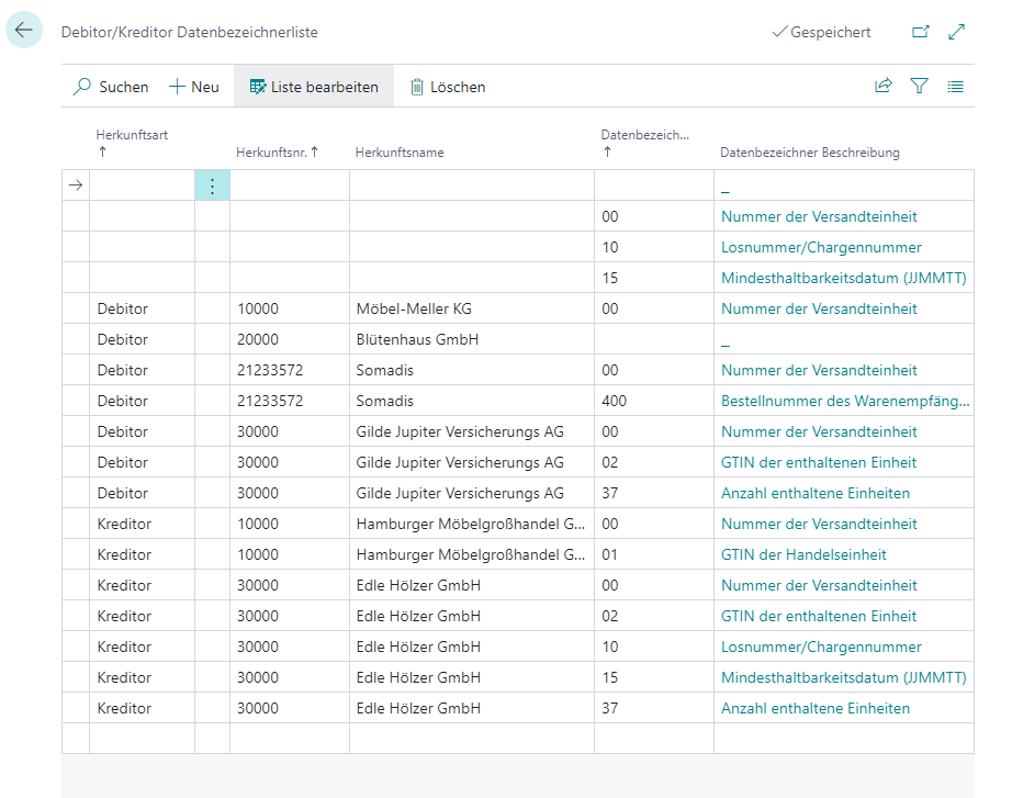 - Ursprung: Enthält Informationen über die Herkunftsart und die Nummer des ursprünglichen Belegs