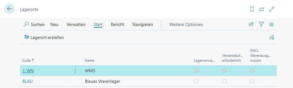 - Öffnen Sie Business Central und navigieren Sie zu der Seite SNCL Lagerhallenübersicht.