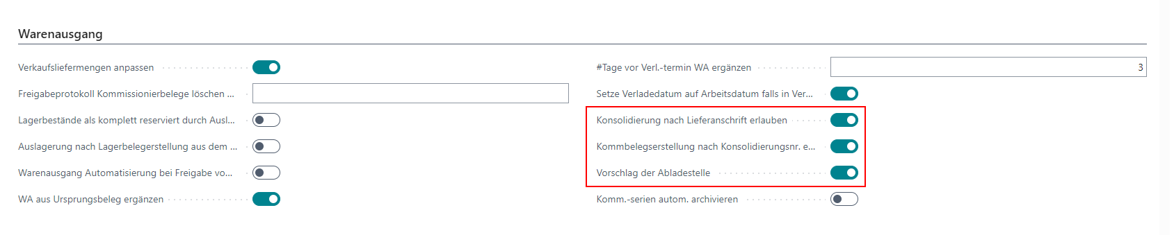 - Aufträge mit gleicher Konsolidierungsnummer: Dürfen zusammenkommissioniert und zusammengepackt werden