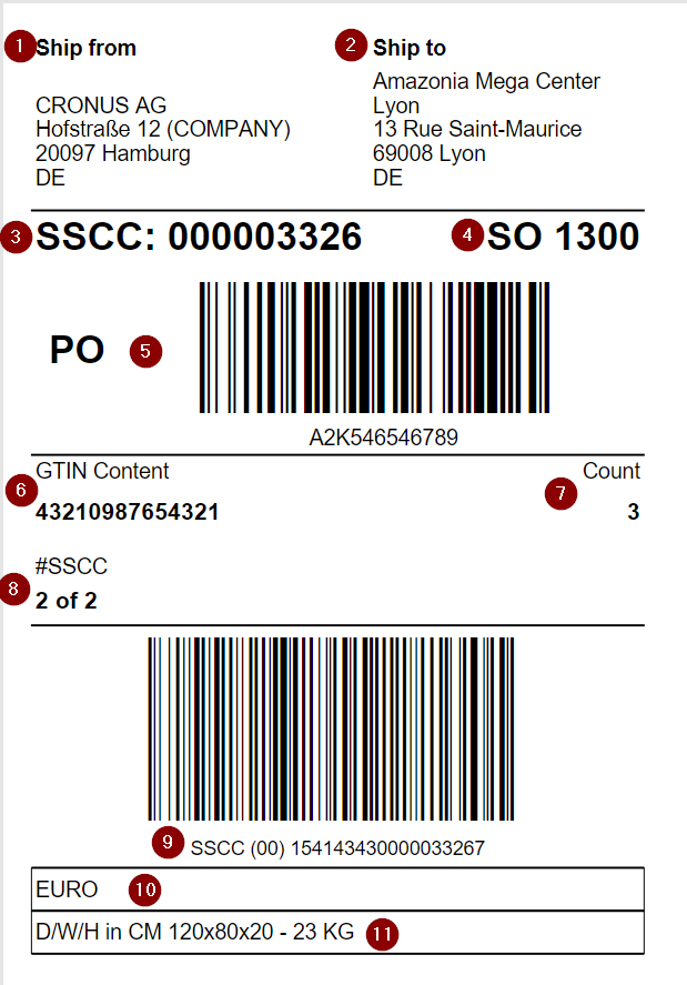 - SSCC number and barcode