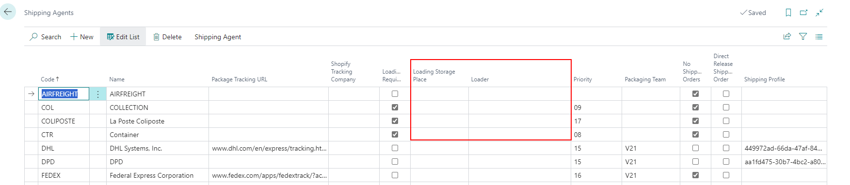 Enter loader and loading storage place in shipping agent and automatically apply those to shipment process - Item 64199