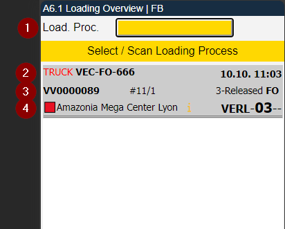 A new MDE page has been created: A6.1 Loading Overview. This page shows an overview over the current shipment processes with these states: