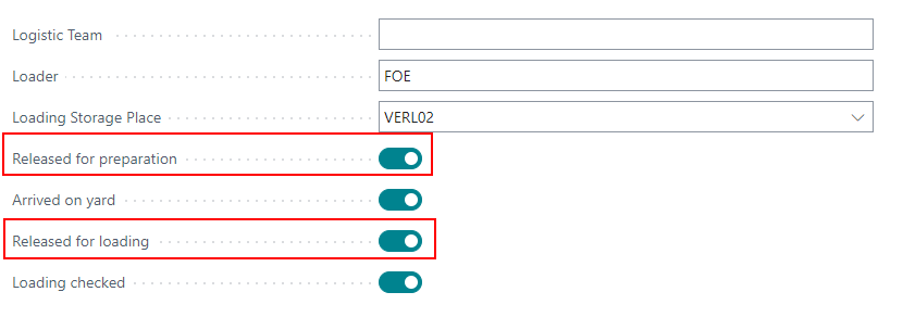 - Released for loading: Sets status to 3-released