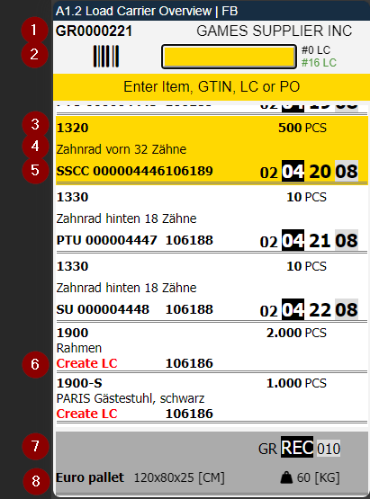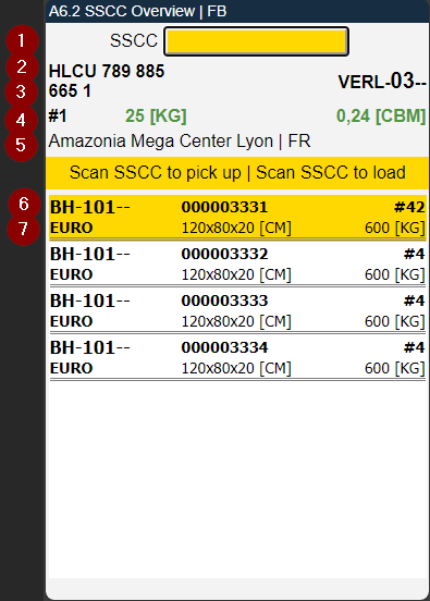 - Left: Number of open SSCC in this loading process | Right: Already loaded SSCC in this loading process