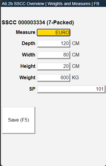 - Left: Weight of open SSCC | Middle: Weight of already loaded SSCC | Right: Maximum weight