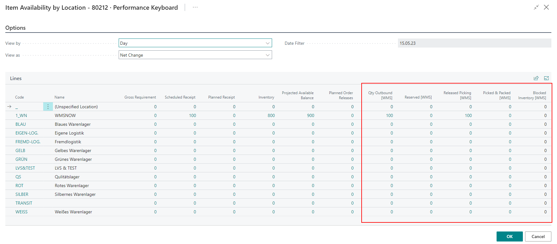 - Qty. Outbound: Quantities that are in a Outbound Stock Post for which no warehouse shipment has yet been posted