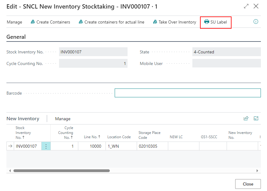 Action on New Inventory Stocktaking in Cycle Counting: Print SU Label - Item 66516