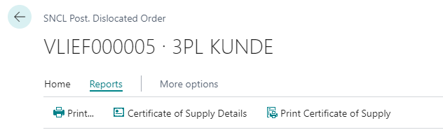 You are now able to print the shipment note, the certificate of supply details and the certificate of supply directly from the Posted Dislocated Order.