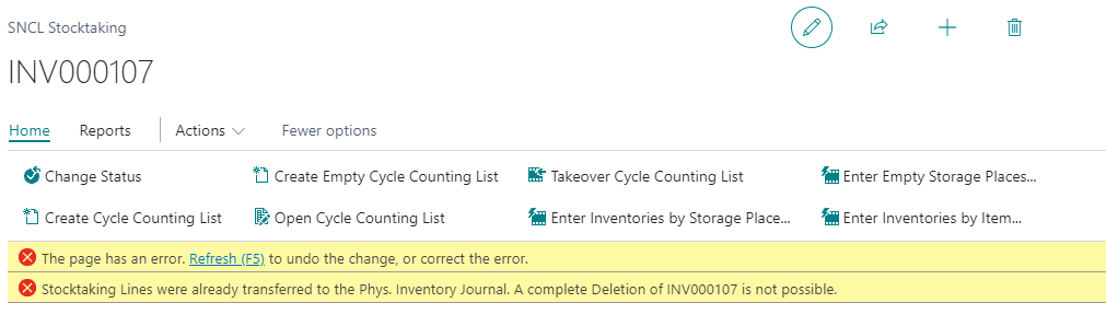 If lines have already been counted in a stocktaking, it is forbidden to delete this stocktaking again. Previously, this circumstance was reported to the user with a generic error message. It was not entirely clear what the exact problem was. For this reason, we have improved the error message:
