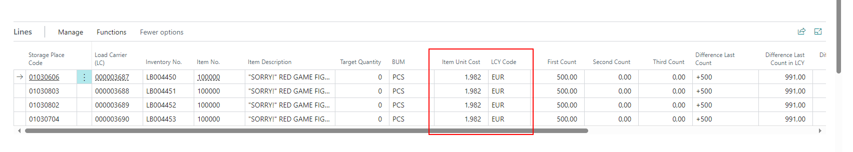 We have changed the column order on the stocktaking lines.