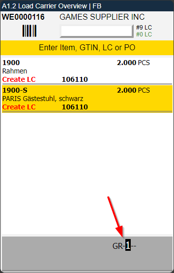 - If there are already load carriers for a warehouse receipt for a vendor with identifiers maintained, A1.2 is opened directly.