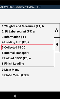 To give the loaders a quick overview of the SSCCs that have been picked up or prepared for loading, they can now open the "Collected SSCCs" via function menu A5. This is only possible after the loader has collected at least one SSCC via scanning.