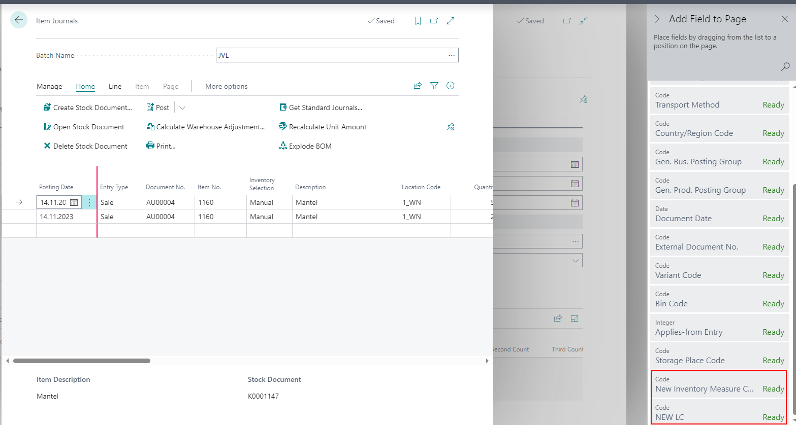 to the Item Journals and the Production Journals. You can add them to the respective table via Personalizing.