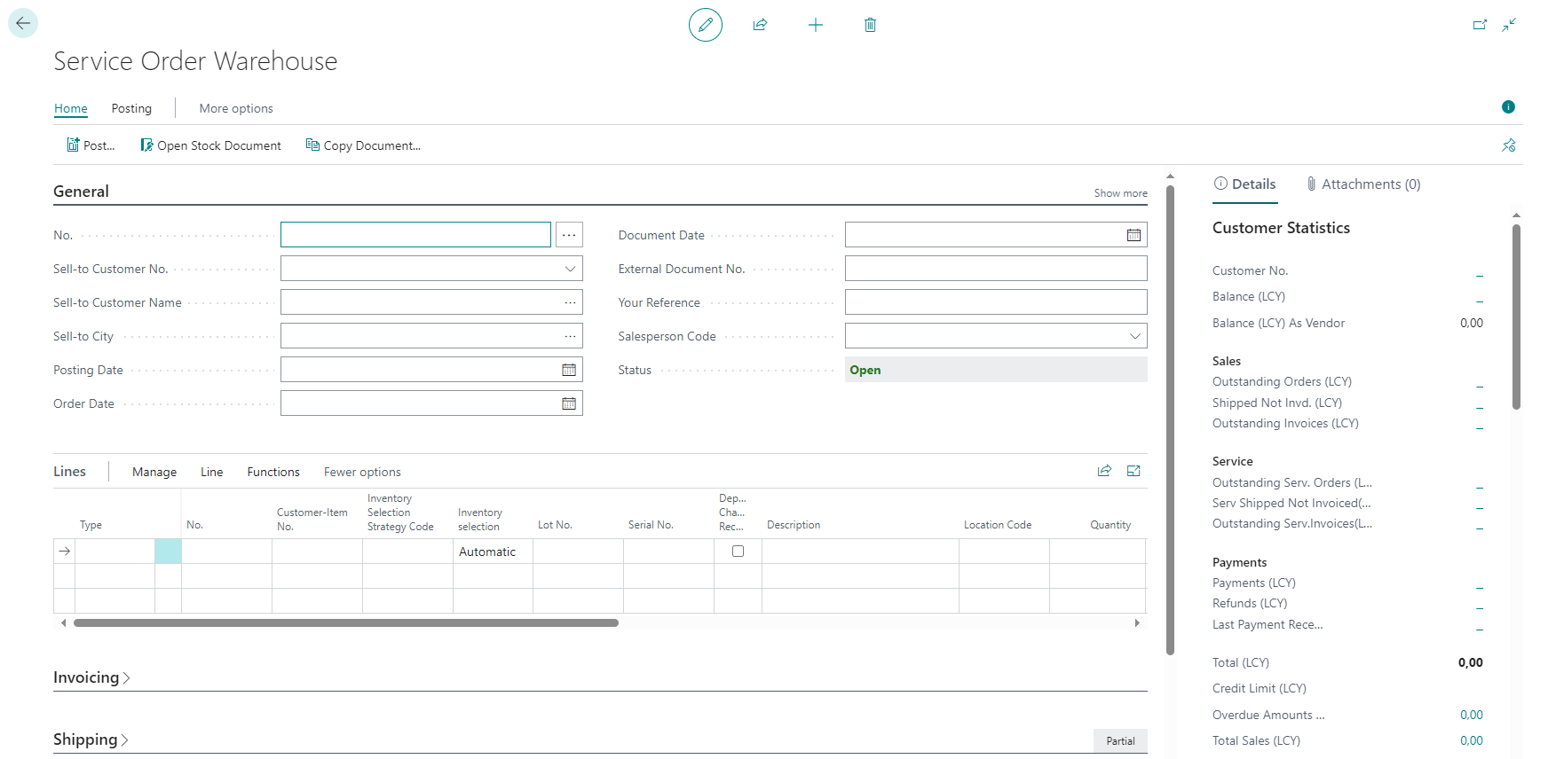 - has a related service order warehouse without lines, this will be deleted and the stocktaking will be posted. The user is notified that stocktaking has been posted but without a service order warehouse.