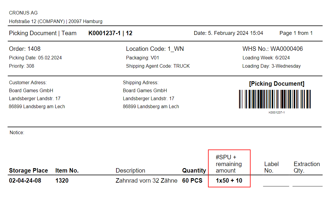 The fields are not editable and are for information purposes only. The proposal is also printed on the picking document.