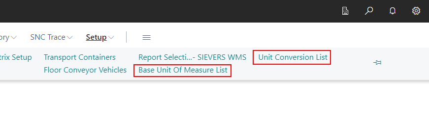 We have added the new setup pages Base Unit Of Measure List and Unit Conversion List, however, our customers had trouble finding those pages. We agreed that this could be solved better and have set up a link to the pages on the front page under Setup as well as in the WMS Setup page under "Related".