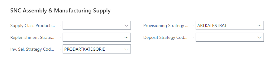 - Location Code Production: Defines where production takes place, where the components are made available and the finished product is posted