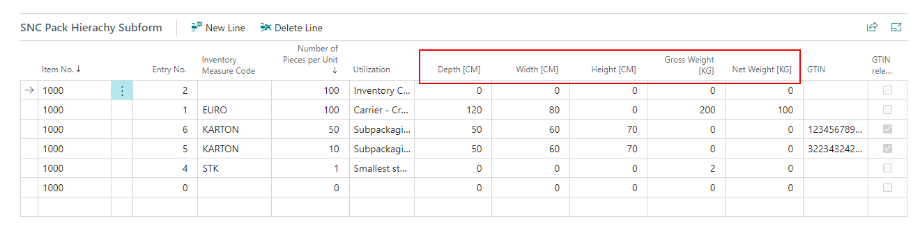 We have added the column Volume to the SNCL Load Carrier List. We also extended the dimensions, volume and weight column header by the respective units.