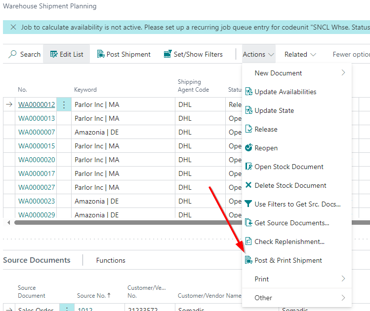 We have moved the action Post & Print Shipment to the Actions dropdown menu.