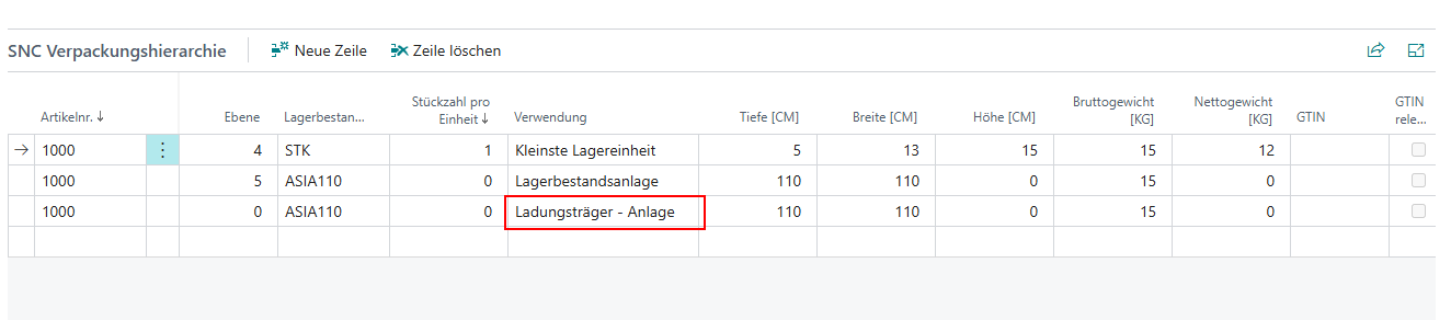 Neue Ladungsträger mit Lagerbestandsmaß aus Verpackungshierarchie - Item 99104