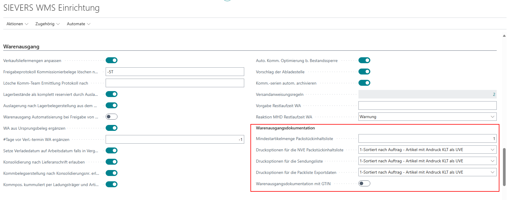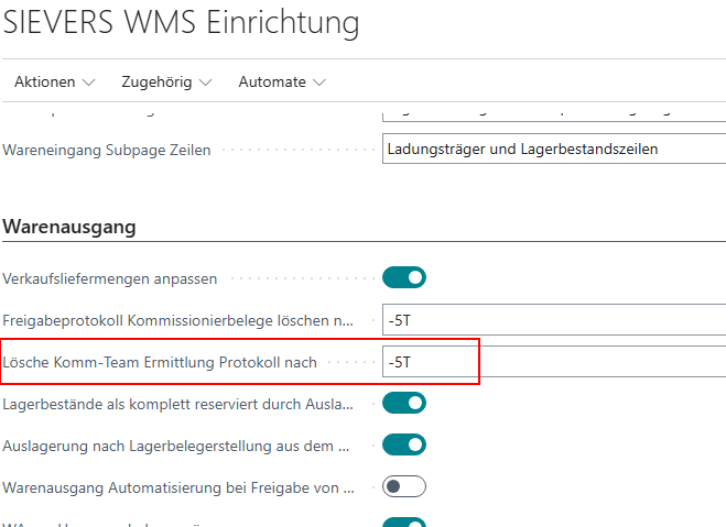 Wir haben im Bereich Warenausgang der SIEVERS WMS Einrichtung ein neues Feld implementiert: