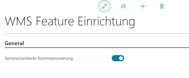 In der SIEVERS WMS Einrichtung gibt es unter dem Menüpunkt Aktionen nun die Aktion WMS Feature Einrichtung. Diese öffnet eine neue Seite, auf der Sie die Serienorientierte Kommissionierung anschalten können. Wenden Sie sich bitte vorher an Ihren SIEVERS WMS Partner.
