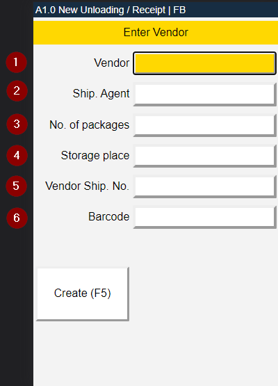 This page opens after a warehouse employee used the button New Process / New Unloading in A1.1