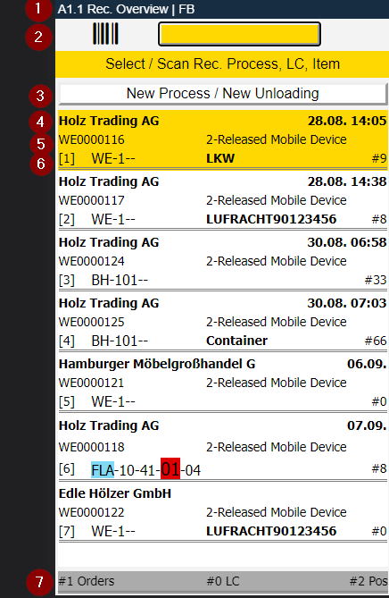 With the latest release we have implemented the first pages and features for the mobile warehouse reception on A1. The following sections describe the implementations in detail.