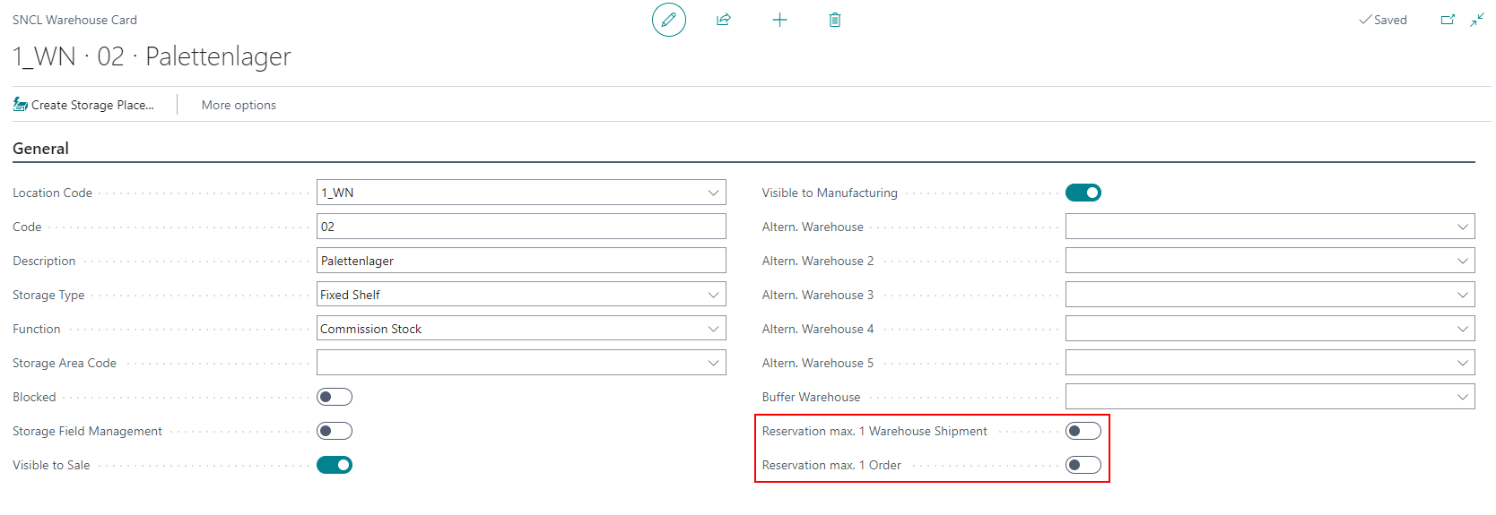 Normally, the ratio of consolidation place to warehouse shipment or order is 1:n. These options allow you to specify whether the ratio should be 1:1. If you set only Reservation max. 1 Order to true, Reservation max. 1 Warehouse Shipment is automatically set to true as well.