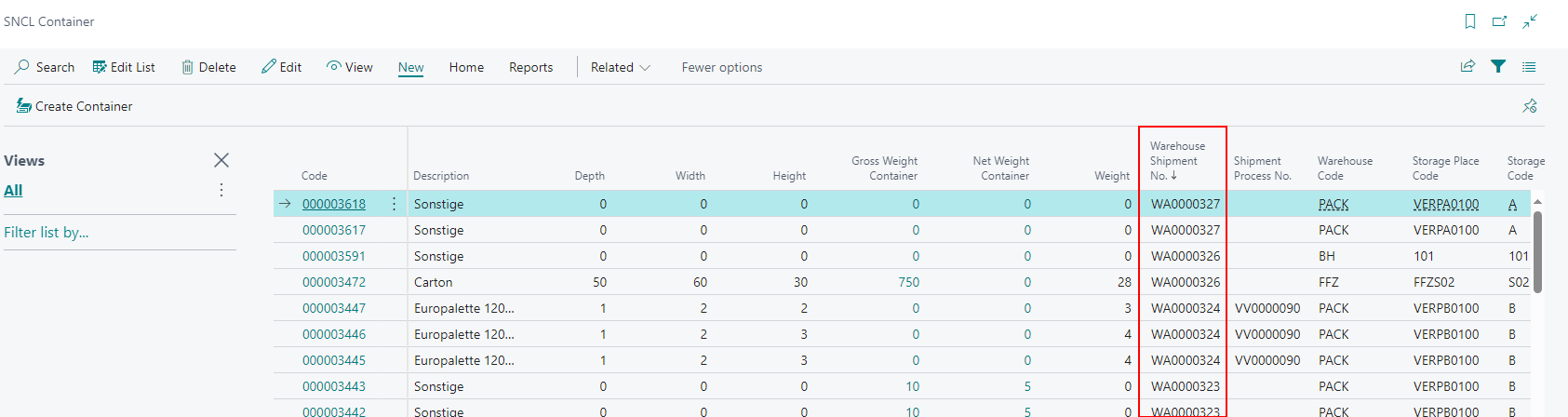 We have added the column Warehouse Shipment No. to the SNCL Load Carrier List