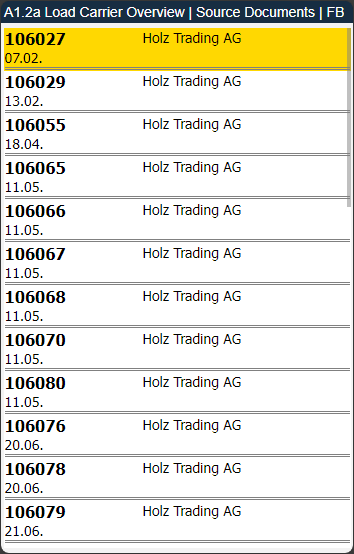 We have added a new function to the warehouse receipt process on the mobile device: The Source Document Entries. With this you can open a list of related source documents and select a single document. This will be automatically entered in A1.2.