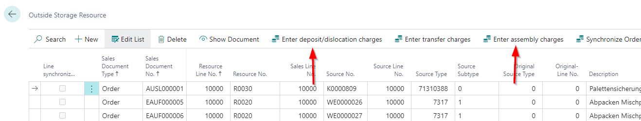It is now possible to enter Inbound Stock Post charges, Outbound Stock Post charges and assembly charges in the assembly order at the touch of a button. To do this, open the outside storage resources after posting the Inbound Stock Post or Outbound Stock Post order and click on the corresponding action.