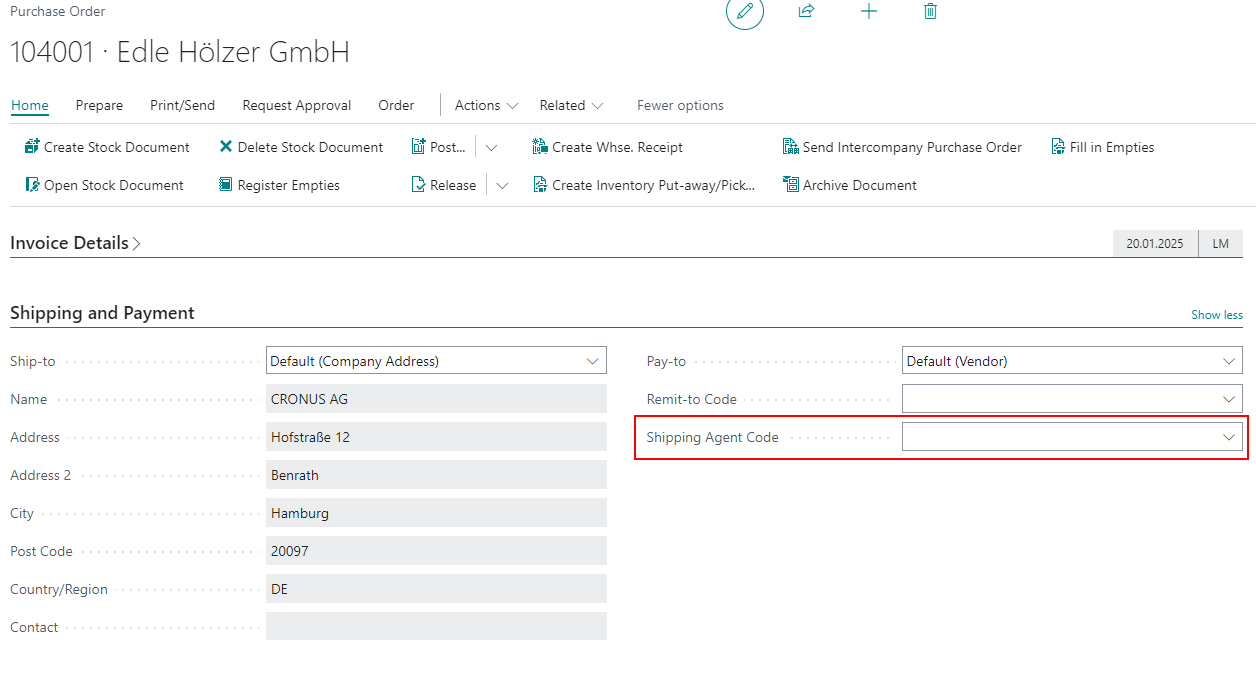 When creating a new warehouse receipt, either the shipping agent code or the vendor no. must be filled in. This is necessary for subsequent processing and is generally important for assignability. However, due to an error, the check for these two fields was switched off. As a result, load carriers could be created in the warehouse receipt that had no shipping agent and no vendor stored, which can lead to subsequent errors in the further process. We have now fixed this bug.
