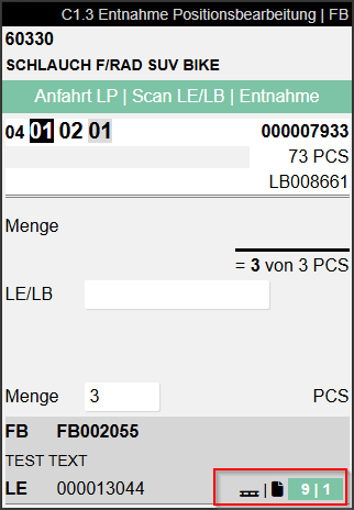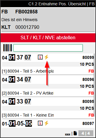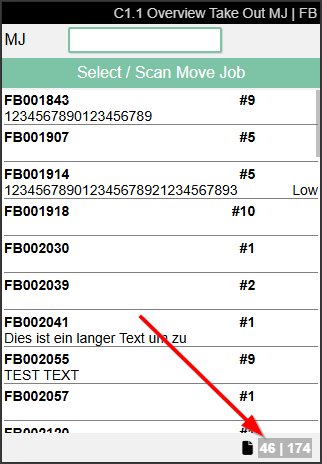 In the lower right corner of the C1.3 Take Out Pos. Processing page, there are now two new icons and two numbers:
