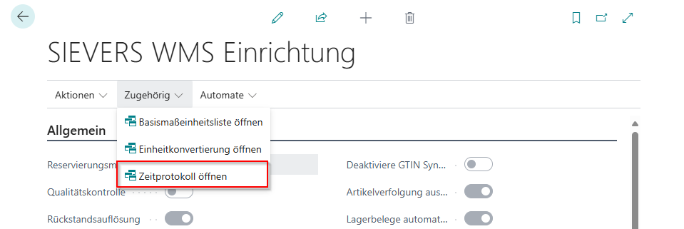 There is now a time log for the SIEVERS WMS Setup. Here you can track who activated or deactivated the option field Allow Correction Postings without WMS and when. The time log currently has no further function.