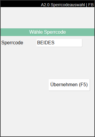 - Block Code Internal Transports: Default block code that should be assigned when the original target location in A2 was blocked. If nothing is entered here, a query is started each time during blocking, in which the user must enter a block code.
